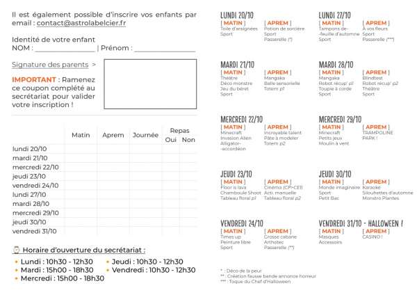 Lundi 20/10 [ MATIN ] Toile d’araignées Sport [ APREM ] Potion d...